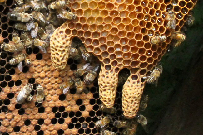 4. พฤติกรรม การสังเกตพฤติกรรมของผึ้งเป็นอีกหนึ่งวิธีในการประเมินความสมบูรณ์ของรวงรังและสภาพแวดล้อมโดยรอบ ซึ่งผู้เลี้ยงผึ้งควรหมั่นสังเกตและบันทึกข้อมูลแปลงเลี้ยงของตนไว้อย่างสม่ำเสมอ เช่น การสังเกตจำนวนประชากรผึ้งที่บินเข้าออกรังมากน้อยเพียงใด ในพื้นที่บริเวณนั้นมีกลุ่มผึ้งที่บินมาพักเพื่อหาแหล่งที่อยู่ใหม่อยู่เสมอ การเข้าอยู่ของผึ้งในรังล่อจำนวนเท่าใด นอกจากนี้ยังควรทำการสำรวจภายในรังเลี้ยงอยู่เป็นประจำด้วย เช่น การสังเกตการสร้างหลอดนางพญาตัวใหม่ การวางไข่ของผึ้งงาน และสัดส่วนของประชากรผึ้งภายในรังผึ้งมีความสมดุลกับจำนวนรวงผึ้งหรือไม่ เป็นต้น