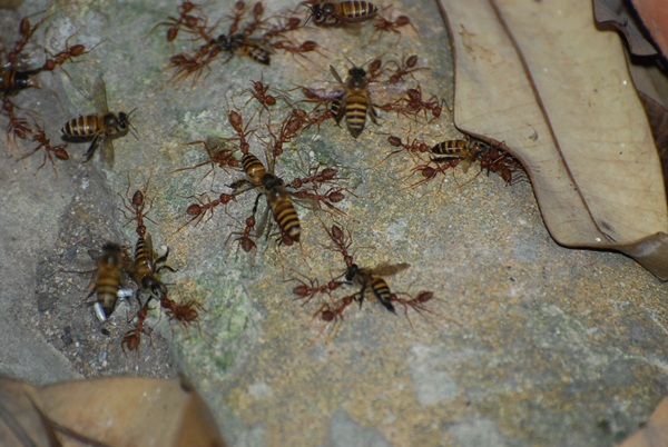 3. ศัตรู การจัดการศัตรูของผึ้งเป็นอีกสิ่งหนึ่งที่สำคัญสำหรับการเลี้ยงผึ้ง เนื่องจากศัตรูผึ้งบางชนิด ผึ้งไม่สามารถป้องกันกำจัดได้ด้วยตัวเอง จึงส่งผลให้ประชากรของผึ้งลดลงนำไปสู่การล่มสลายของรังผึ้งในที่สุด โดยศัตรูที่สำคัญ ๆ เช่น มด ตัวต่อ นก หนอนผีเสื้อกลางคืน (หนอนกัดกินรวงผึ้ง) เป็นต้น นอกจากนี้อีกสิ่งหนึ่งที่ผู้เลี้ยงผึ้งหลายคนมองข้าม แต่เป็นสาเหตุหลักของการที่ผึ้งไม่เข้ารังล่อ คือการตรวจเช็คภายในรังล่อ เพราะยังมีศัตรูอีกหลายชนิดที่แอบแฝงอยู่ภายในรังล่อผึ้ง คอยดักจับกินผึ้งที่มาสำรวจหาสถานที่สร้างรังใหม่ โดยมีศัตรูดังกล่าว เช่น แมงมุม จิ้งจก ตุ๊กแก กิ้งก่า หรือสัตว์ที่กินแมลงเป็นอาหาร ส่งผลให้ผึ้งที่บินมาสำรวจหาที่อยู่ใหม่ไม่สามารถกลับไปบอกสมาชิกตัวอื่น ๆ ที่กำลังแยกขยายรัง และส่งผลให้รังล่อของผู้เลี้ยงผึ้ง ไม่ประสบความสำเร็จในการตั้งรังล่อผึ้งจากธรรมชาติ ดังนั้นจึงควรตรวจเช็คศัตรูของผึ้งและคอยทำความสะอาดรังที่ตั้งล่ออยู่เป็นประจำอย่างน้อยอาทิตย์ละครั้ง จึงจะช่วยเพิ่มโอกาสการเข้าอยู่ของผึ้งจากธรรมชาติได้มากยิ่งขึ้น