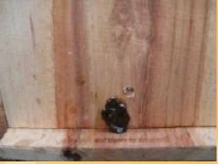 5. นำไข (ขี้ชัน) มาติดบริเวณปากทางเข้ารังชันโรงที่แยกใหม่ เพื่อล่อตัวเต็มวัยชันโรงจากรังเดิมให้เข้ารังที่แยกใหม่